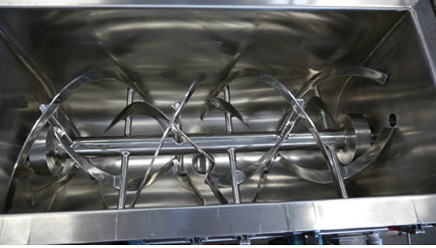 The ribbon blender mixes of dry granules and powders homogeneously materials within a U- shaped trough. A horizontal agitator consisting of precisely pitched inner and outer helical ribbons moves materials in a well-balanced axial and radial flow pattern. High-quality ribbon blenders feature tightly controlled clearances between the trough surfaces and agitator tips. Good design and expert fabrication ensure fast repeatable mixing, easy clean-up, low maintenance, and long service life.